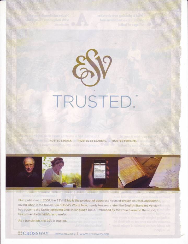 ….some things are just better left alone. The GS movement has been busily running about setting up there own spiritual infrastructure for some time now, and apparently, they wanted their own, unique Bible as well. The Bible of choice for the Sonship / GS faithful is the ESV, published in the very contemporary year of 2001. In the advertisement posted at the end of this article—featuring the who’s who of GS doctrine, Francis Chan says: “I’ve loved using the ESV translation because [it’s the GS thing to do] I trust the scholarship [emphasis mine] behind it and the accuracy [emphasis mine] of the interpretation.” Hmmmm: he’s wrong about Jesus being our Beverly Hills 90210 boyfriend—could he be wrong about the ESV as well?