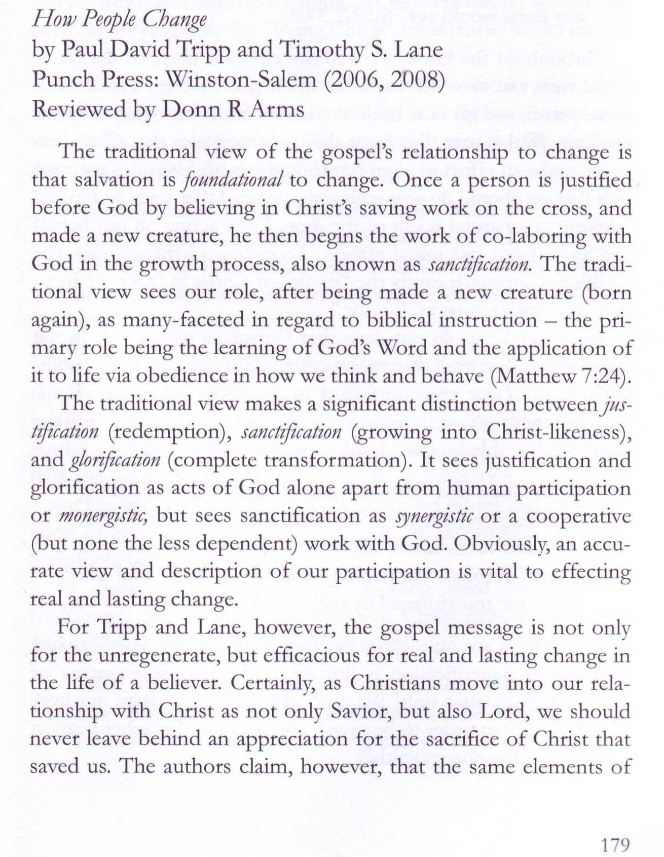 Book Review by Donn R. Arms (JMM Vol. 8 Issue 1 Winter 2011):”How People Change” by Paul D. Tripp and Timothy S. Lane
