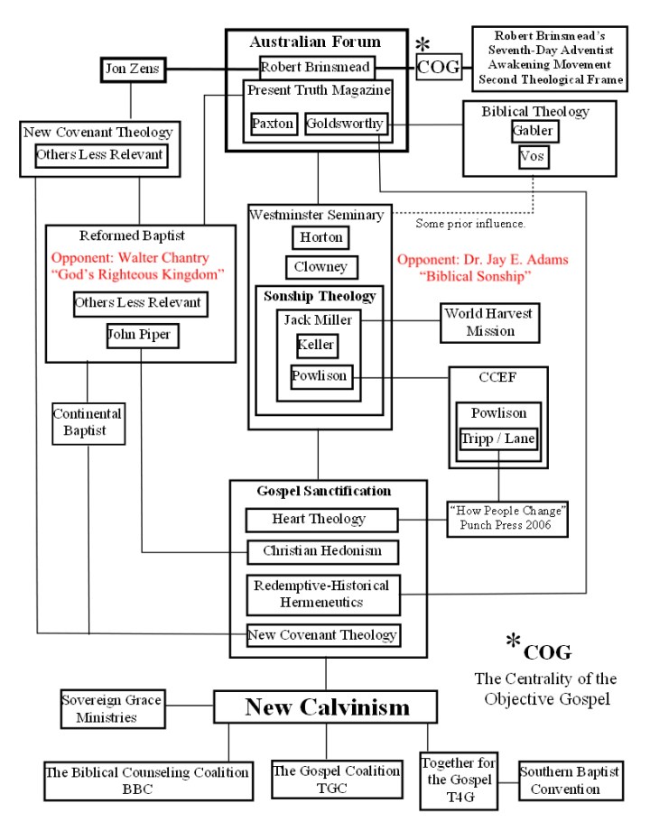 The nemesis of New Calvinism is the ability to obey the law because we have been created anew by God (unlike before we were saved, Romans 8:6-8). They don’t like that because they are antinomians—period. As you know, my thesis is that NGSS came from the Australian Forum’s (hereafter AF) centrality of the objective gospel (hereafter COG). The basics of the doctrine came from the Seventh-day Adventist Awakening movement led by Robert Brinsmead. He developed three primary doctrinal frameworks while he led that movement. The first concerned judgement, the second concerned the objective gospel, and the third was a total departure from Christianity all together after he left the AF (and their theological journal Present Truth) to begin writing Verdict. During his development of the second framework, he started the AF project and was joined by Geoffrey Paxton and Graeme Goldsworthy. I refer to them as the AF3. It was clearly their goal to developed Brinsmead’s second framework into a unified theological system.