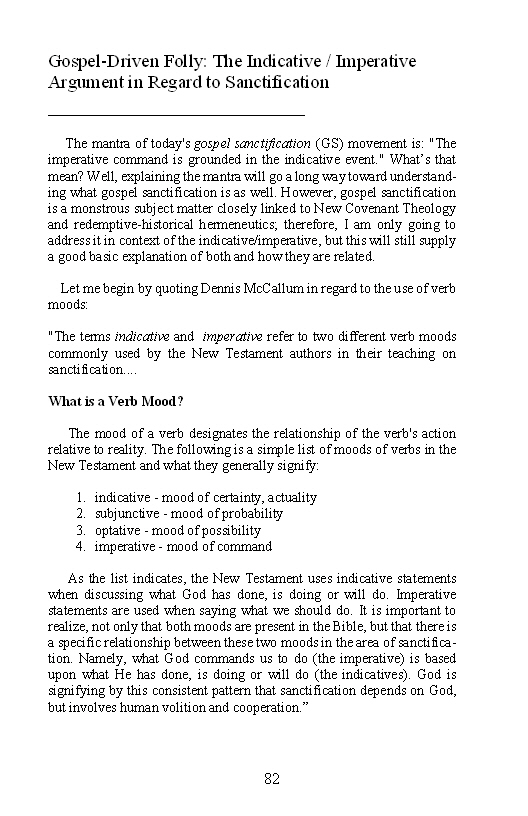Excerpt From “Another Gospel”: Gospel Sanctification / Sonship “Indicative, Imperative” Argument