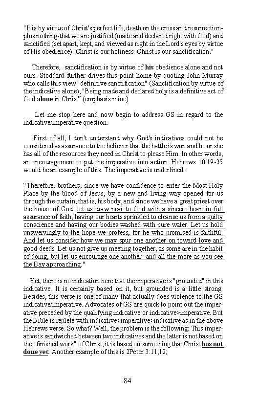 Perhaps you could tell me the difference between “grounded in” and “based on.” I frankly don’t see any difference. Additionally, what do you think GS people are saying if not that the finished work of Christ gives “assurance to the believer that the battle [the war] is won, and that he or she has all the resources they need in Christ to please Him?”