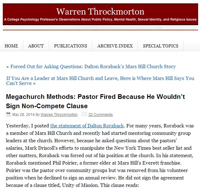 Seriously? Mars Hill has a non-compete agreement that says: NO PREACHING THE GOSPEL, TEACHING OR MINISTRY?