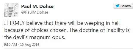 Or according to the Calvinist’s there will be weeping in hell because man did not have a choice, it was already decided for him! And this brings glory to God?