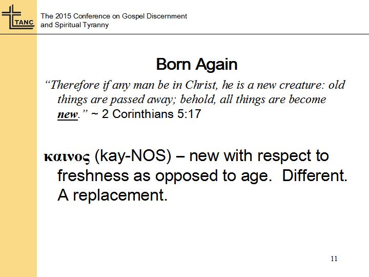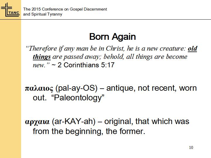 So in the last session since we talked about the new birth, by extension it only makes sense that we talk about the new man. What is the new man? And I think if we ended our study right now we could by reason simply conclude that the new man is that which exists by virtue of the new birth. Right? The old man died, and a new man was born in his place. That new man was born of God. And that was the original assumption I had as well as I began going into this study and preparing for this conference. In fact to some extent protestant/reformed orthodoxy at least pays lip service to this notion of a new man, and that’s what they would have most of the laity buy into. But we know of course that their notion of a “new man” is nothing more than a realm, or a new way of seeing things differently. It’s not an actual, literal change that takes place in someone.