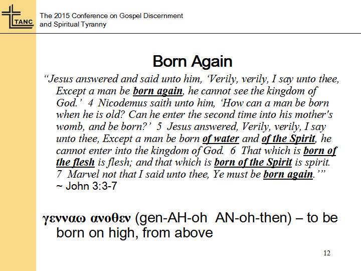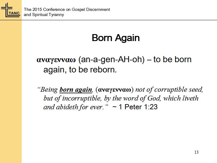 Now Peter takes this expression that Jesus uses, born from above, and he takes that idea with the proper understanding uses a different word altogether. He takes the word “genAHoh”, and combines that with the prefix “ana”, which if it’s used alone it means “up”. But when you combine it as the prefix of another word it adds a meaning of repetition or intensity. So in 1 Peter 1:23, Peter uses the word