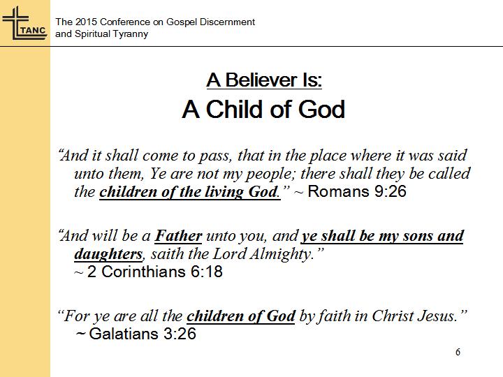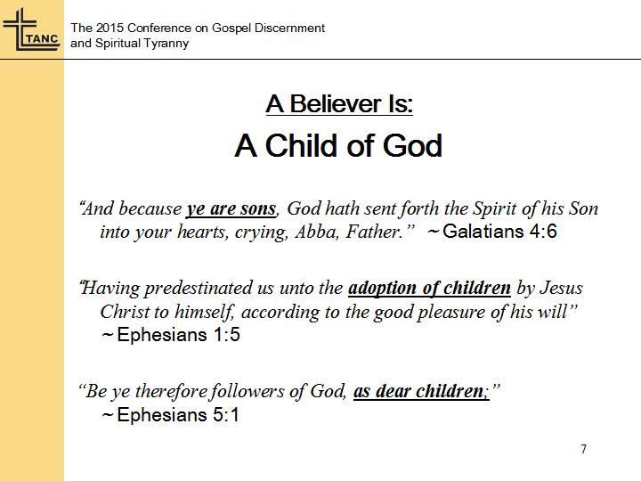 Now there’s a lot more that can be said about the significance of being a child of God. You saw the reference about being an adopted child. Now an adopted child is what, one who was not born to the parents who have legal custody of him, right? So I don’t want us to misunderstand when Paul uses this terms referring to adopted children. The new birth is a reality. We are born of God in every sense of that word. The new birth is an actual birth. It is not something that we have already that God then accepts as His own and reforms it.