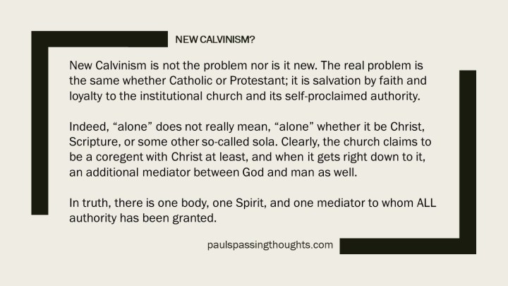 Paul, realizing normal people did not like the despicable term “Calvinism,” that deceiving lot started using their “Doctrines of (dis)Grace” to make the evil sound less, uh, Calvinist. They caught many people who were (are) too lazy to use the intellect God has freely given.