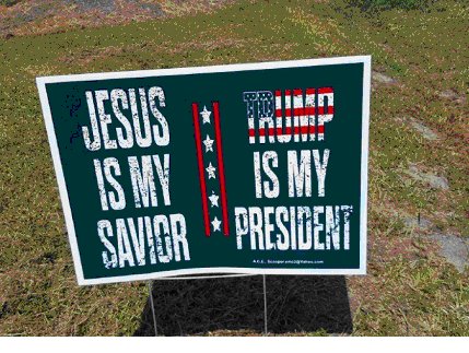 Strictly speaking Trump IS president, and the sign poster IS declaring his fealty to Jesus. So from 2016 to 2020, saying that Jesus is my Savior/ Trump is my President would be a correct representation of reality. To deny this existential fact is to demand people judge reality incorrectly. This would be called a lie.