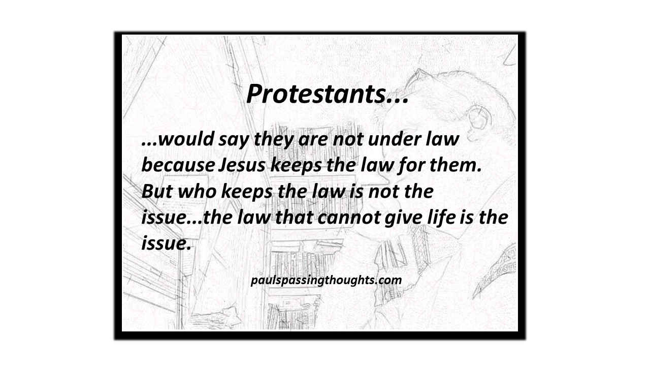 But why can’t the torah give life? Because its from the god who has no intention but to condemn all to hell no matter how well they keep his law. This is why we need the Trinity to save us from the god of the torah. This is why although against “the law” Paul says he is “still under law to Christ.” Because there is still a law, but it is the law of a different God.