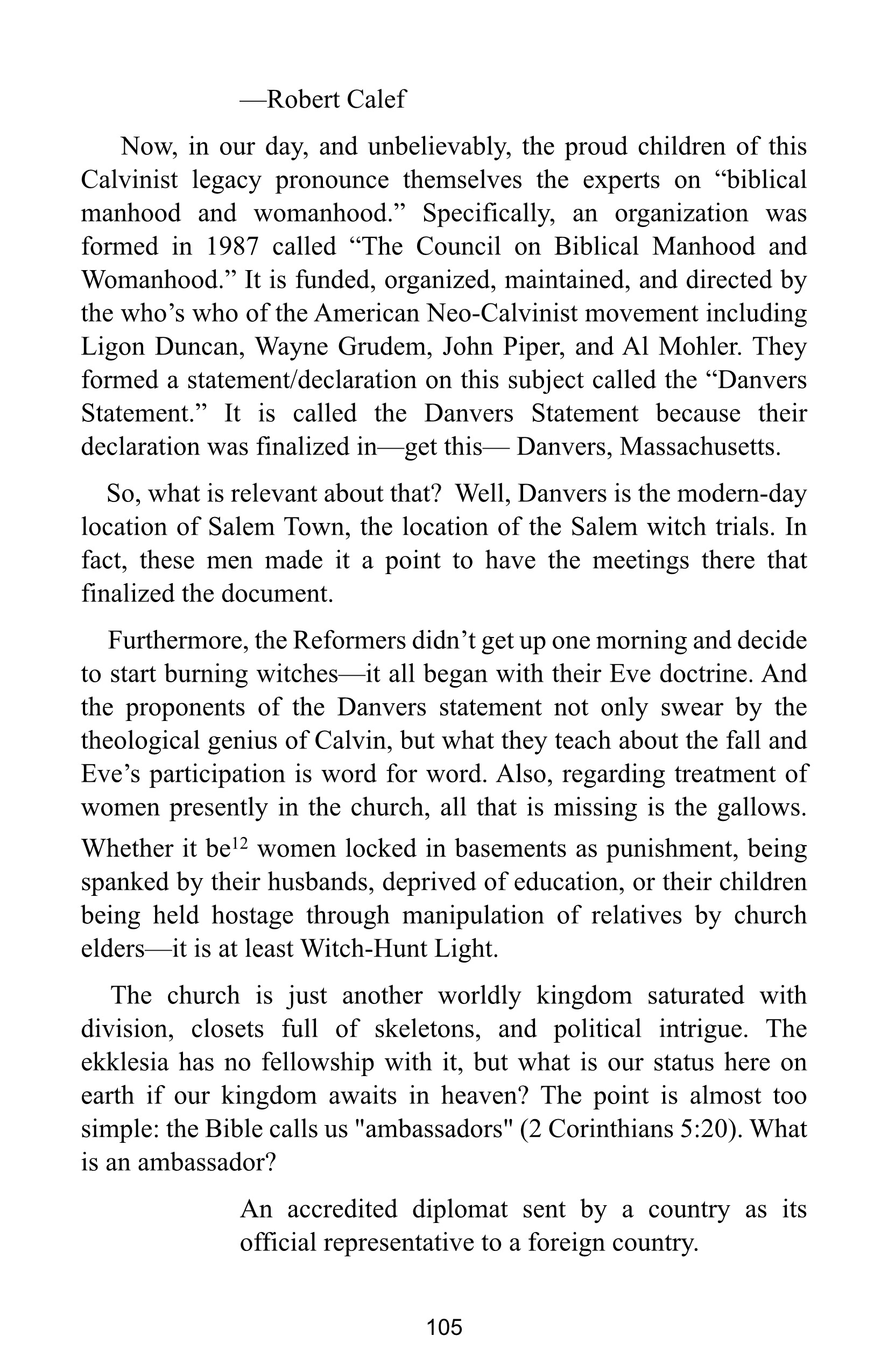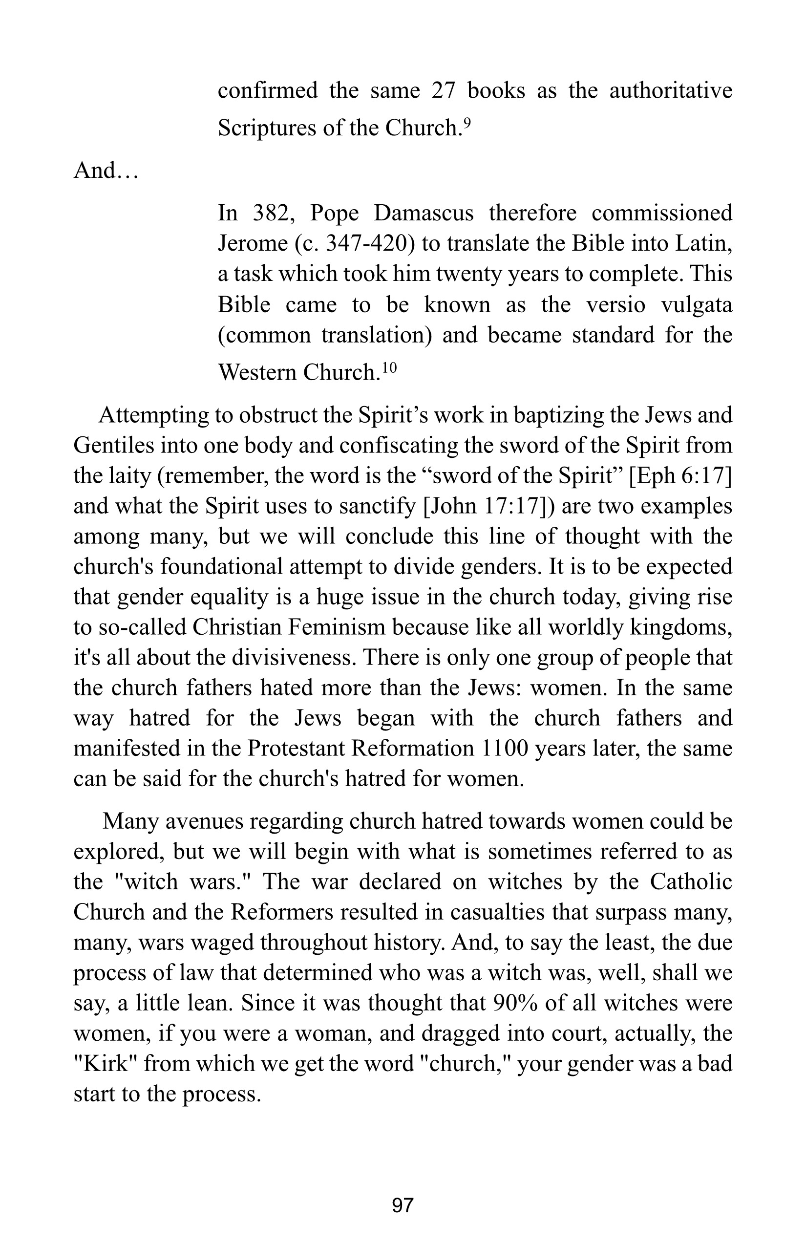 The rhetoric you quote….”do you not know you are an Eve and must bear the punishment of your sex?” proves my point. The punishment is pain in childbirth. These “witches” were abortionists. Its mythologized to keep the younguns from understanding what was going on.