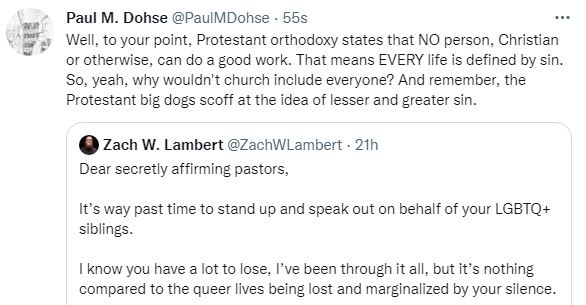 The Mennonites don’t teach that nobody can do agood work, do they? “Church of Christ” don’t either, not traditionally, although they probably have become more Baptist in the past 15 years. Baptists are the loudmouthest in America and so corrupt all the other debominations eventually with their Calvinism. But there traditionally were churches with more roots in the “Radical Reformation” than the”Magesterial Reformation” but America will eventually homogenise them into one big Baptist tent of crypto-Calvinists thanks to mass media and personalities like Billy Graham and the rest of the modern Baptist circus, Driscoll, Piper, Beth Moore, basically any famous pastor you can name is Baptist.