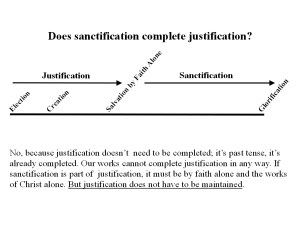 This ministry has made much of the critical importance of separating justification (salvation) and sanctification (growth in holiness, or kingdom living). The Reformed (Calvin/Luther Reformation doctrine/gospel) “never separate, but distinct” doublespeak doesn’t cut it in the arena of truth, and we will see why. “Never separate” =’s false gospel. If you get a little lost in the first part of my argument which gives the lay of the land, don’t worry, when I get into the specific Scriptural argument, it will clear things up and make it all come together for you. It must delight the ghosts of the Reformation that the argument has always been in the arena of freewill verses predestination. It’s the primary thrust of this ministry to change that argument. This isn’t a quibbling about semantics in the mainstream—this is about the truth of the gospel. As New Calvinist Russ Kennedy once thundered from the pulpit in his mousy voice: “Any separation of justification and sanctification is an abomination!” I have often argued from the standpoint of this issue. If sanctification is the middle of the Reformed “golden chain of salvation” then sanctification is part of finishing justification. This means that what happens in sanctification determines whether or not justification is properly finished. What’s a chain? John Piper even preached a message about the eternal importance of our contribution to the “links” in just the right way. In essence, sanctification becomes a spiritual minefield. This is exactly the same thing that the Reformed crowd has always accused Rome of: the fusing together of justification and sanctification. However, as we shall see, they are both guilty of the exact same heresy/false gospel. As we shall see, both teach that sanctification finishes justification. This is a linear gospel (one unified chain from salvation to resurrection (glorification) versus a parallel gospel with salvation on one plane as a finished work before the foundation of the world, and kingdom living that runs parallel with the finished work and reflects the reality of our salvation until glorification. Typical in the linear gospel is the idea that Christ died for all of our past sins, but we must now finish the work (with the Holy Spirit’s help [sanctified works salvation]) until glorification when we are completely transformed into complete holiness. This is the often-heard bemoaning of “Christ PLUS something.”