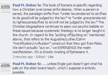 Why has the blogosphere exploded among Christians? Because censorship is rampant in the church. The Neo-Calvinist movement has majority rule right now, and Calvin’s power of the keys come with it. The comment I hear most from church exiles are: “They don’t take challenges to what they teach well.” Or, “Geez, all I did was ask a question!” Couple that with the fact that Neo-Calvinist teachings produce massive confusion. It’s the eternal long car trip for the young child. This is why I am hesitant to censor PPT comments. It just smacks of tyranny. However, in order to turn challenges into the lemonade of persuasion I would have to be available to moderate most of the day, and that’s a huge problem. Unanswered ideas can reflect agreement.