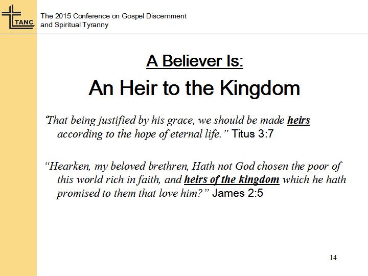 And this is the last point I have about a believer’s identity. An heir to the Kingdom! Take a look at some of these passages
