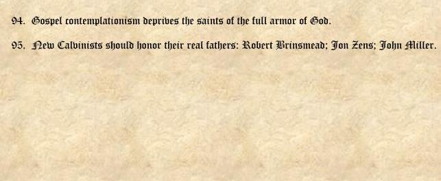 ….but tape it, don’t nail it. That way you will only be brought up on church discipline and not also arrested for vandalism. PDF available here: The 95 Theses Against New Calvinism