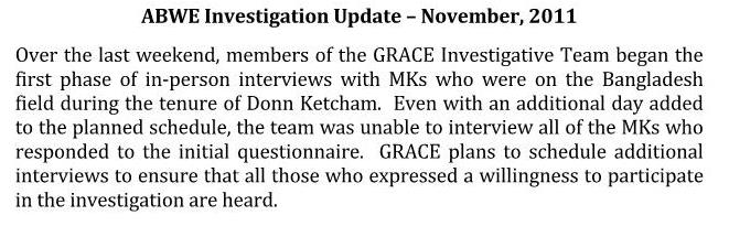 That brings me to the latest “investigation update” by GRACE concerning the ABWE horror story. It begins as follows: