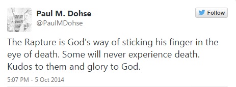 (Eschatology, for those of you who don’t know, is the formal term for the Rapture, or End Time things.)
