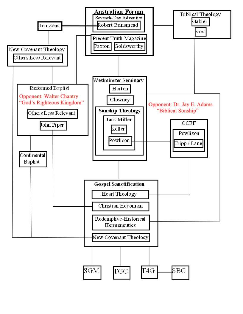 About a year ago, I received a book from an individual whom I suspect knew that there was a connection between Gospel Sanctification and Sonship Theology, but wanted me to see it for myself. The connection was immediately seen in the first 100 words of Adams’ book. After much more research, it looked like Jack Miller was the father of Gospel Sanctification, but I was haunted by a few things. GS seemed to need NCT’s view of the law to function without contradiction. Also, all elements of Sonship and the historical connections were easy to match with GS, but NCT theology seemed to be dropped in out of nowhere. Of course, it didn’t surprise me that the elders of the church I was a member of or CCEF never uttered the name, “Sonship” because that would supply Christians with an interpretive prism that could expose them. Then, several months later, by accident, I stumbled upon an article that mentioned the Australian Forum and how it had a profound effect on the theological mindset of Michael Horton. That prompted me to say to myself, “Oh really?” “What is the Australian Forum?” Well, the rest is history.